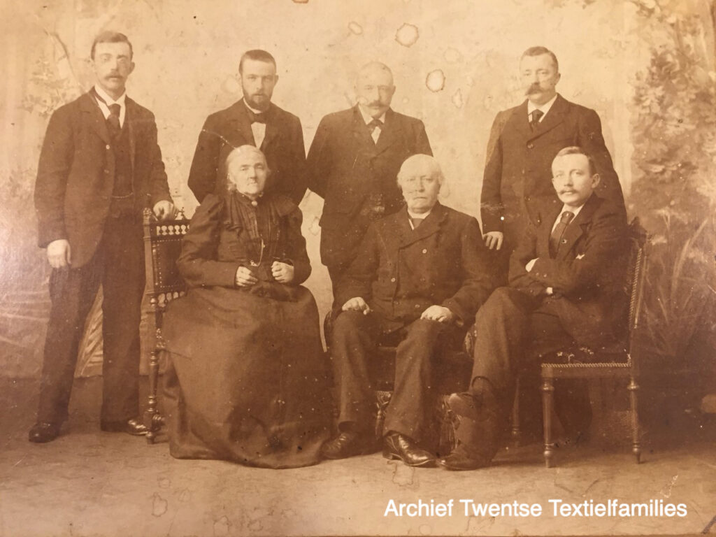 Engelbert ter Kuile (1740-1808) is esteemed within the Ter Kuile family as the ‘patriarch of patriarchs.’ He distinguished himself as the first of his line to be born in Enschede and rose to become one of the great industrialists of his time. His extensive lineage, rich in sons, led to the formation of various family branches. These branches are referred to within the family by the first names of their patriarchs or properties associated with them. This article specifically focuses on the ‘Gerrit branch,’ named after Gerrit Jan ter Kuile (1800-1864), one of Engelbert’s eldest grandsons. Recently, the Twente Textile Families Archive received a photograph considered to be the oldest of this branch. Remarkably, this branch should actually be called the ‘Jan branch,’ as this was the actual nickname of Gerrit Jan ter Kuile. This article highlights three generations of the Ter Kuile family: Jan ter Kuile himself, his eldest son Piet (1829-1911), and Piet’s five sons—a story of both decline and ascent on the social ladder.