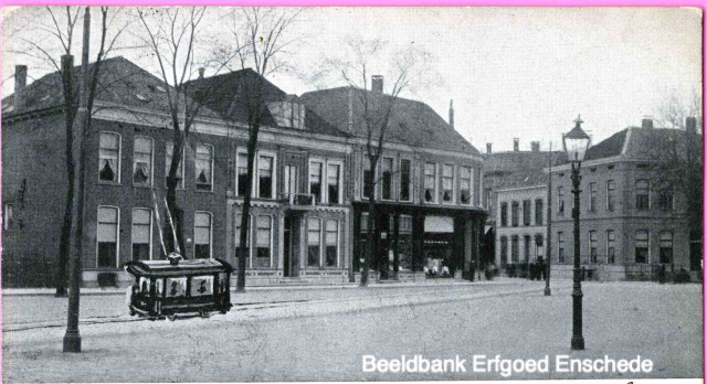 Unfortunately, I could not find a photo of the house on Walstraat in the image bank of Erfgoed Enschede. The attached image from 1909 shows the west side of the Markt, with the houses Markt 4 to Marktstraat (Beeldbank Erfgoed Enschede, no. 9533). On the left side, the low fence is still visible, behind which the deep garden extended to the house on Walstraat. If you happen to have a photo of the old Ter Kuile family home on Walstraat, we would love to hear from you.