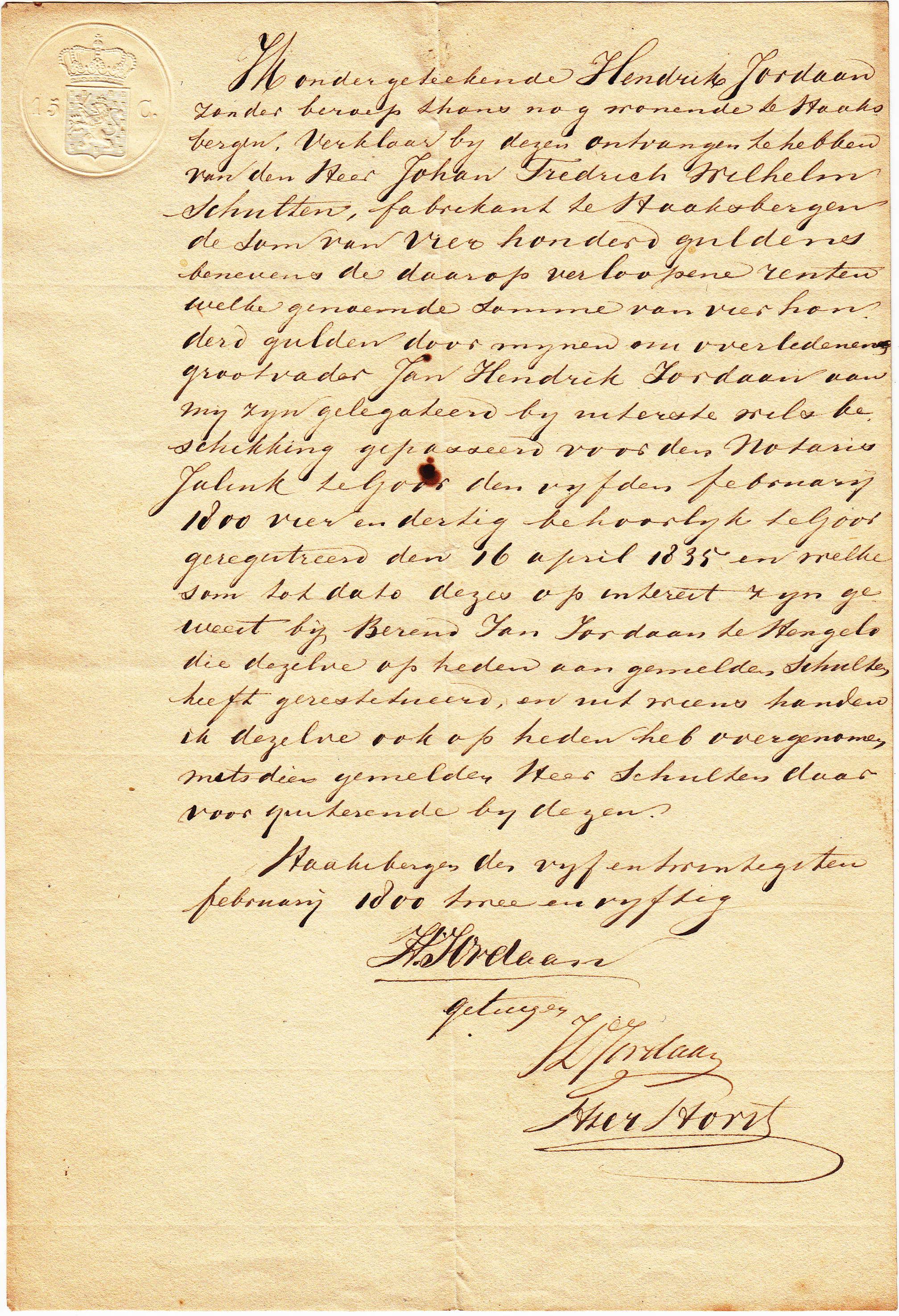 3Zo blijkt uit een passage uit het testament van notaris Jan Hendrik Jordaan, 1834.
