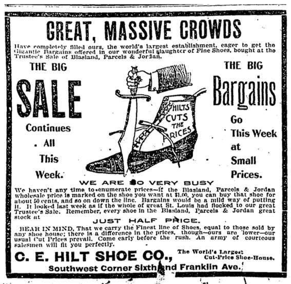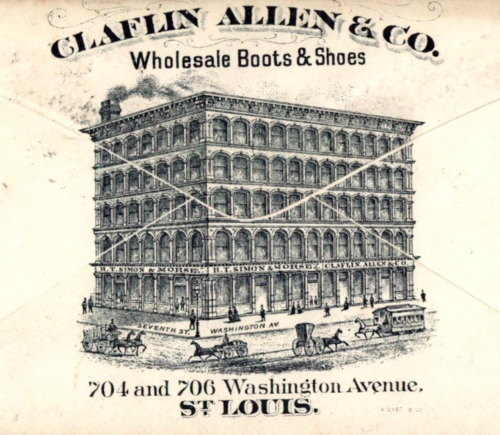 Het eerste harde bewijs van Henry in St. Louis dateert van 1857. Hij was op dat moment werkzaam als salesman bij de schoenengroothandel Claflin, Allen & Co op het adres 80 North Main Street.x In 1860 telde de firma – naast de firmanten – 3 salesmen, 1 boekhouder en 1 portier.xi