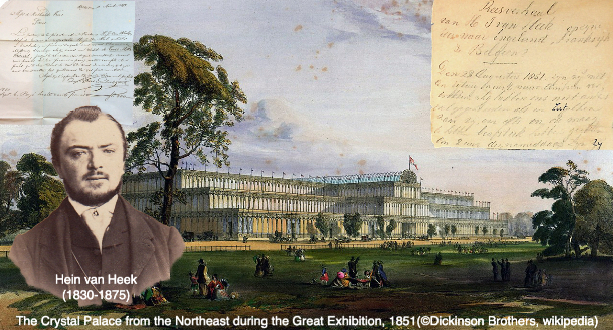 Het reisgezelschap bezocht ’the Great Exhibition’ in Londen, de eerste wereldtentoonstelling die werd gehouden. Prins Albert, de echtgenoot van de Britse koningin Victoria, was een van de organisatoren. Hij stelde veel belangstelling in de technologische vooruitgang en daar was in de speciaal voor dit evenement gebouwde Crystal Palace genoeg plaats voor. De bezoekers konden zich daarnaast dagenlang vergapen aan alle pracht en praal afkomstig uit de gehele wereld. Hendrik van Heek en zijn vrienden waren niet de eerste bezoekers van de familie. Zwager Isak Bussemaker (1826-1901) uit Deventer was hen voorgegaan en had Hendrik uitgebreid van tips and tricks voorzien.