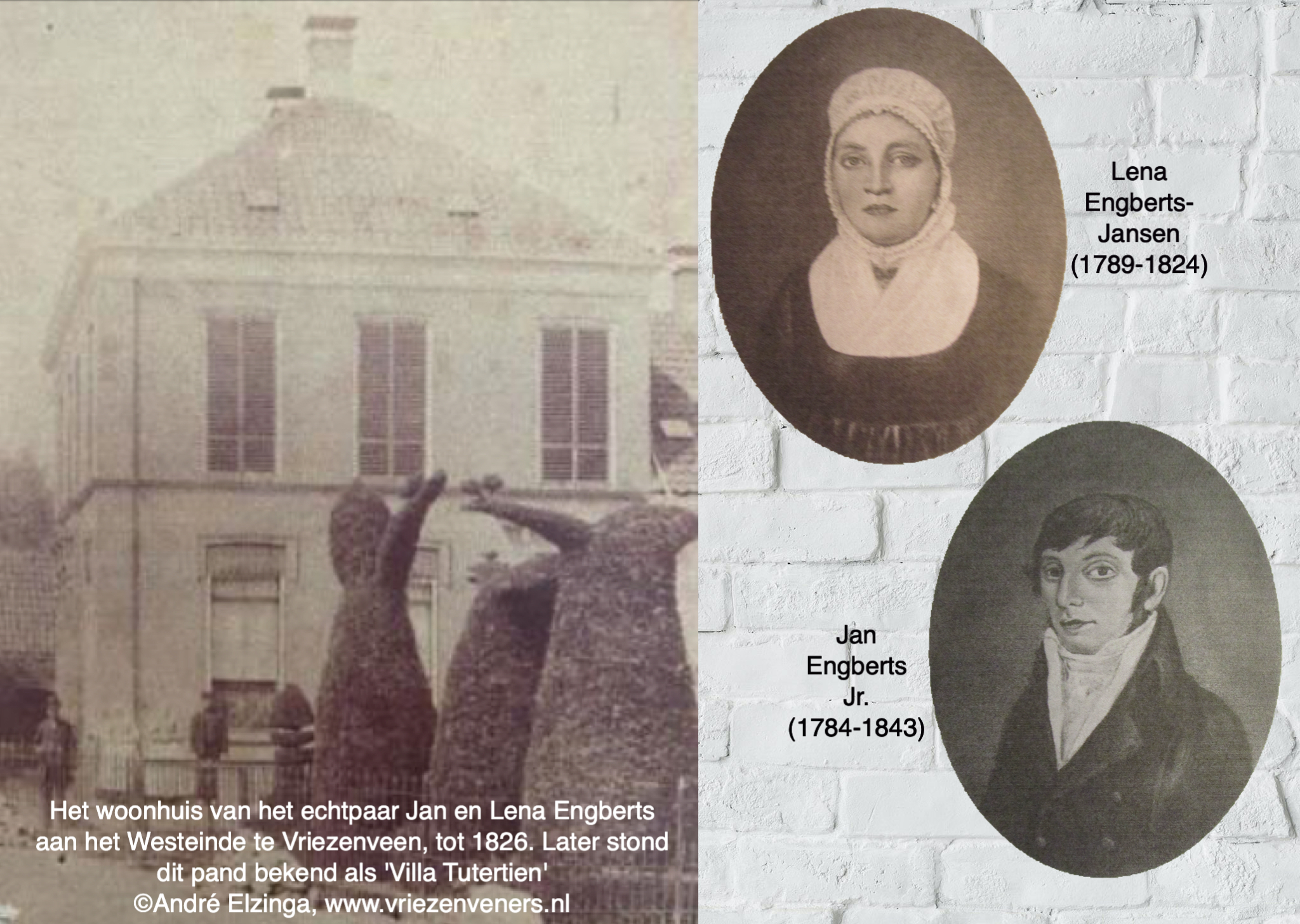 - de foto van het oude woonhuis van de familie Engberts-Jansen in Vriezenveen is afkomstig van de heer André Elzinga. Later ging het huis over op de familie Tutertien (zie facebookpost 9 juli 2022), waardoor het huis als ‘Villa Tutertien‘ bekend raakte. Voor mensen met ‘Ruslui’-bloed is de website van dhr. Elzinga zeker de moeite waard om te bezoeken: www.vriezenveners.nl.