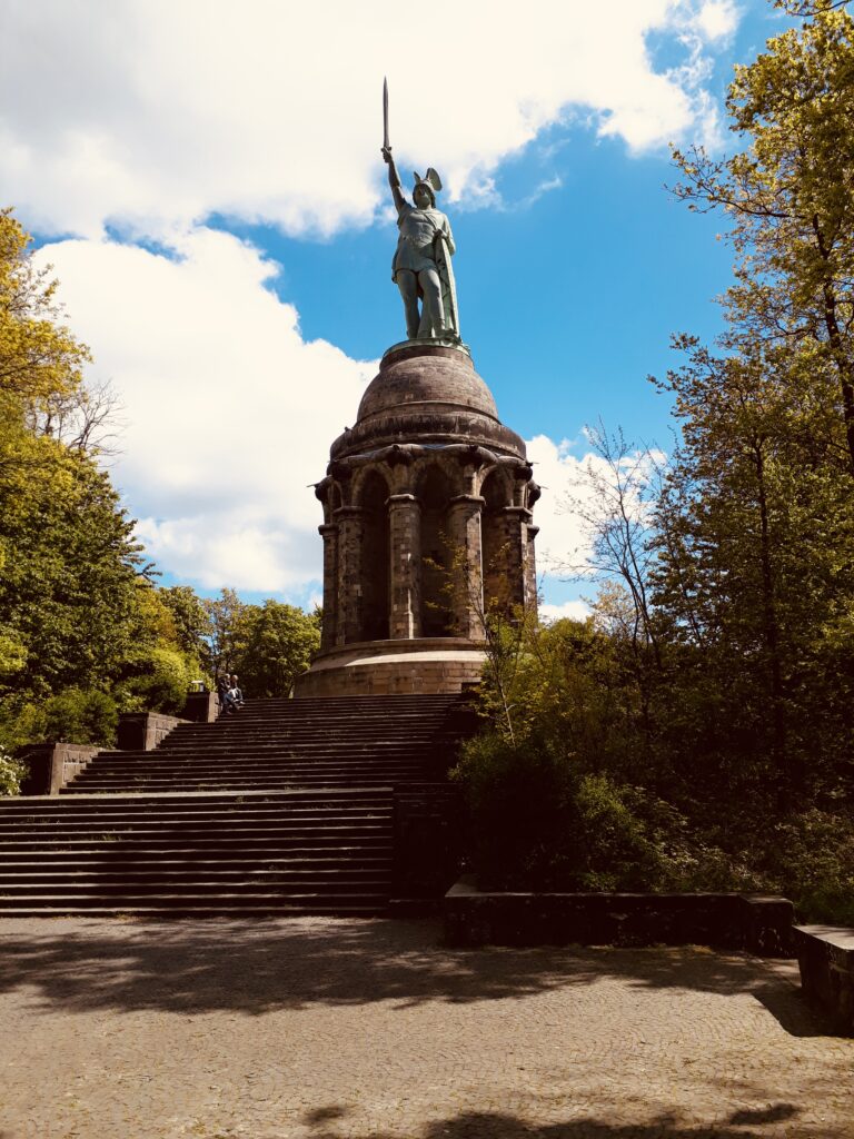 Saltus Teutoburgiensis verwijst naar het slagveld waar een belangrijke strijd plaatsvond tussen de Romeinen en verschillende Germaanse stammen in het jaar 9 na Christus. De Germaanse veldheer Arminius, ook bekend als ‘Hermann’, slaagde erin om in de Slag bij het Teutoburgerwoud het Romeinse leger verpletterend te verslaan. Deze overwinning was zo vernietigend dat zelfs keizer Augustinus maandenlang zijn baard en haar liet groeien als teken van rouw. Na deze strijd durfden de Romeinen de Rijn niet meer over te steken. Het Hermannsdenkmal, opgericht in 1875, eert de Duitse vrijheidsstrijder Arminius en was destijds het hoogste standbeeld in de westerse wereld, tot de bouw van het Vrijheidsbeeld in New York.